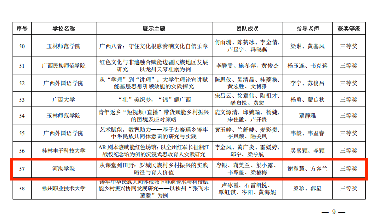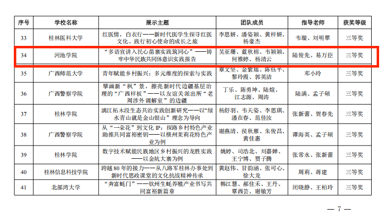 河池学院学子在2025年广西高校大学生思政课研究性学习成果展示大赛中喜获三等奖