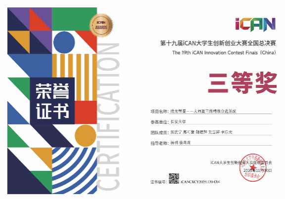 近期,第十九届iCAN大学生创新创业大赛圆满落幕。本届大赛共吸引全国900支精英团队同场竞技,长安大学参赛队伍凭借出色表现,在激烈竞争中脱颖而出,最终荣获国家级二等奖1项、三等奖1项,西北赛区一等奖1项、二等奖3项、三等奖2项。
